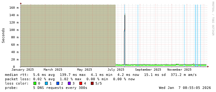 Last 360 Days from smokeping.miknet.fcq.ovh
