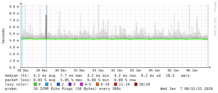 Last 10 Days from smokeping.miknet.fcq.ovh