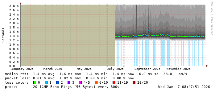 Last 360 Days from smokeping.miknet.fcq.ovh